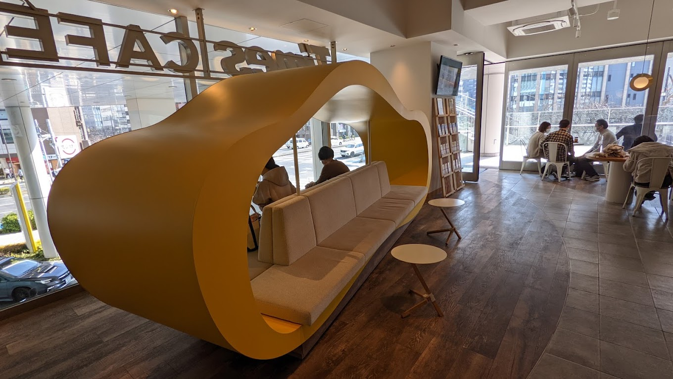 This is a cafe on the 2nd floor of the headquarters of Park24 Co., Ltd., known for its coin parking.